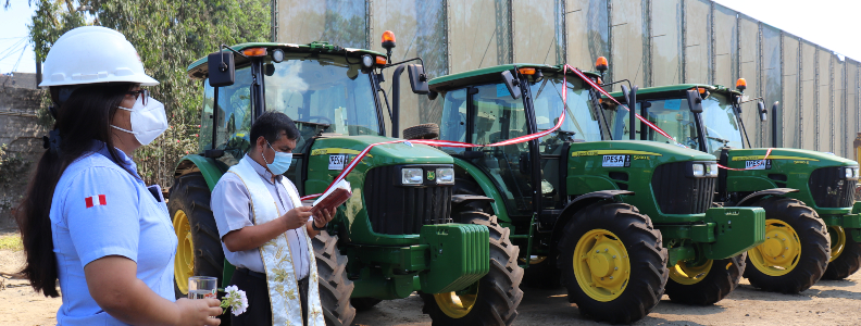 Sin embargo, antes de iniciar sus operaciones en el campo, invitamos al Rvdo. Padre Pedro Briceño para que brinde la tradicional bendición a las tres nuevas unidades y elevar sus oraciones por los colaboradores que la utilizaran en su día a día, así como a todos los integrantes del Departamento de Operaciones Agrícolas que estuvieron presentes en la pequeña ceremonia que se realizó en un espacio abierto y respetando la distancia entre los asistentes.